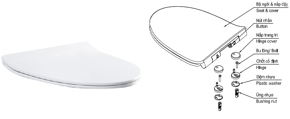 Một chiếc nắp bồn cầu hoàn chỉnh sẽ bao gồm các bộ phận sau: