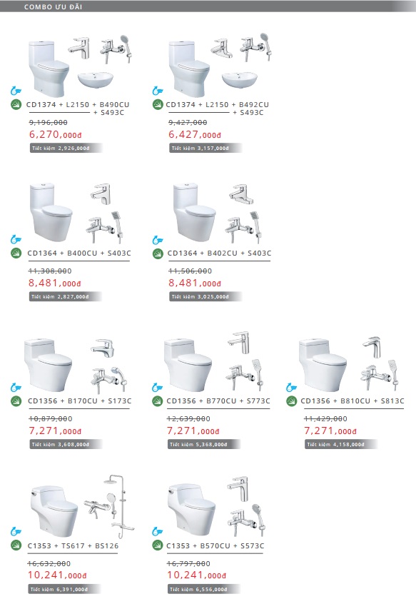 Để không gian phòng tắm trở nên hài hòa thì việc lựa chọn các sản phẩm cùng 1 bộ sưu tập vô cùng cần thiết. Hãng Caesar đã kết hợp khuyến mãi bộ combo sen tắm và vòi lavabo giúp khách hàng dễ dàng chọn được sản phẩm phù hợp với mức giá chiết khấu ưu đãi.