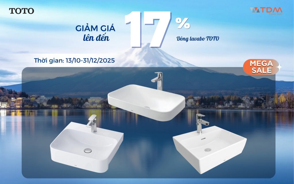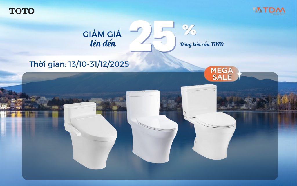 Từ ngày 13/10 đến hết 31/12/2025, khách hàng sẽ được giảm giá lên đến 30% khi mua sắm nhiều dòng sản phẩm thiết bị vệ sinh TOTO chính hãng tại hệ thống phân phối trên toàn quốc.