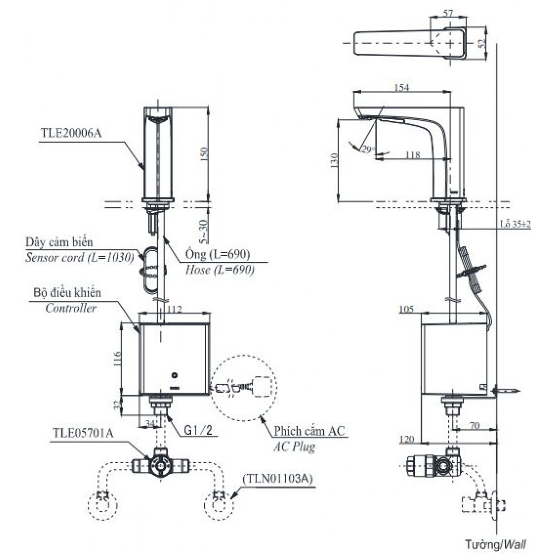 Bản vẽ vòi tự động TOTO TLE 20006V