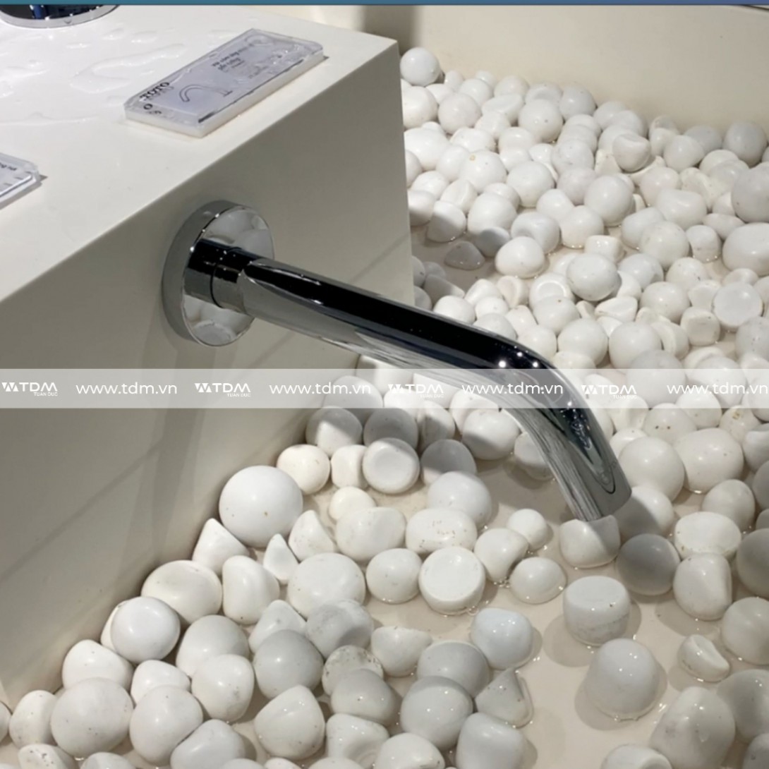 - Cảm biến được đặt bên dưới đầu vòi để phát hiện người dùng chính xác hơn