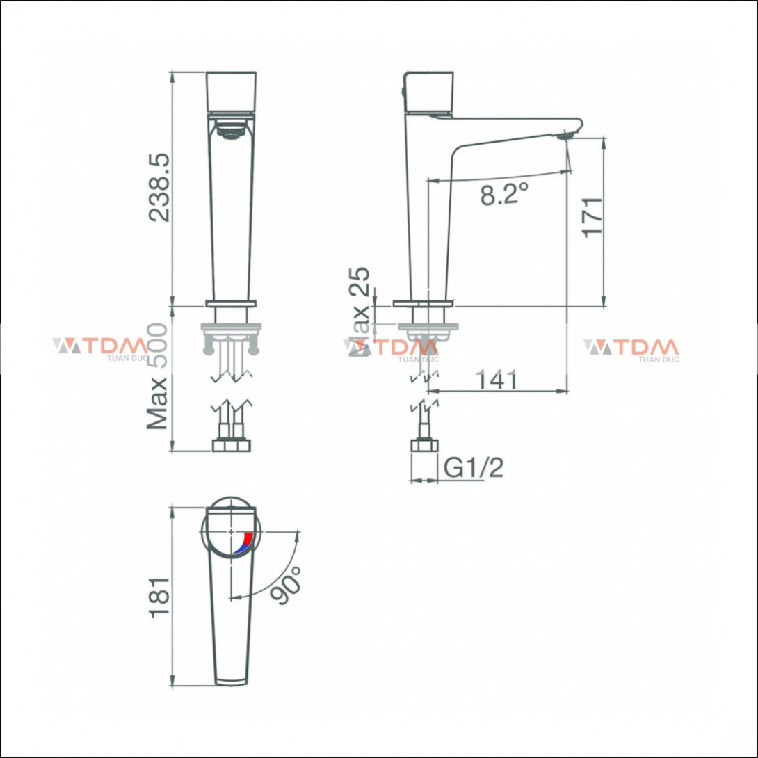 Bản vẽ vòi lavabo Viglacera VG-136.1 cổ cao
