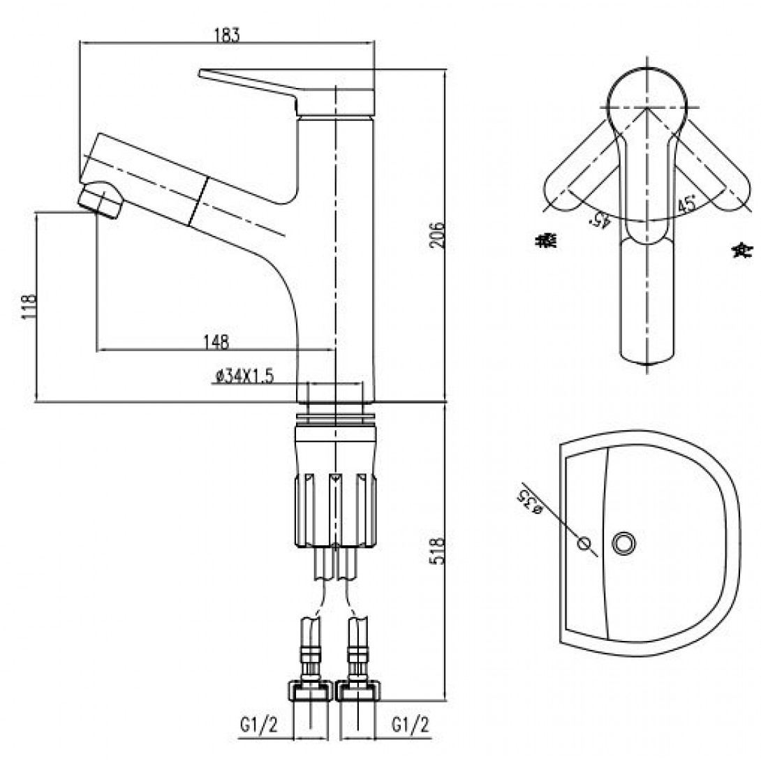Bản vẽ vòi chậu 324435741BZ JOMOO