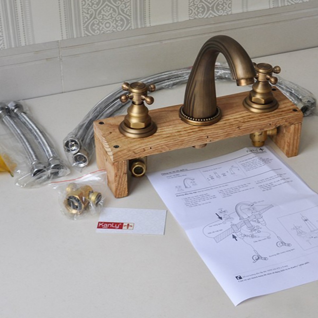 Vòi Lavabo Kanly GCV01 Nóng Lạnh Bằng Đồng Cổ Điển