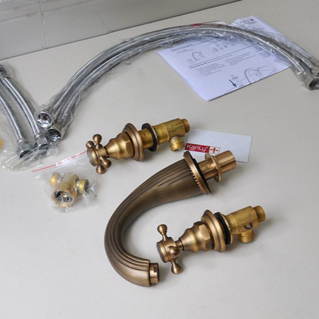 Vòi Lavabo 5 Lỗ Kanly GCB04 Nóng Lạnh Bằng Đồng Cổ Điển - Tuấn Đức