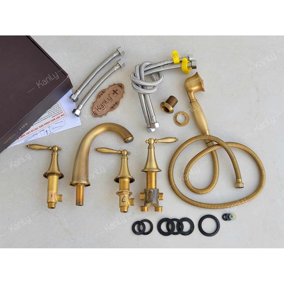 Vòi Lavabo 5 lỗ Kanly GCB22 Nóng Lạnh Bằng Đồng Cổ Điển - Tuấn Đức