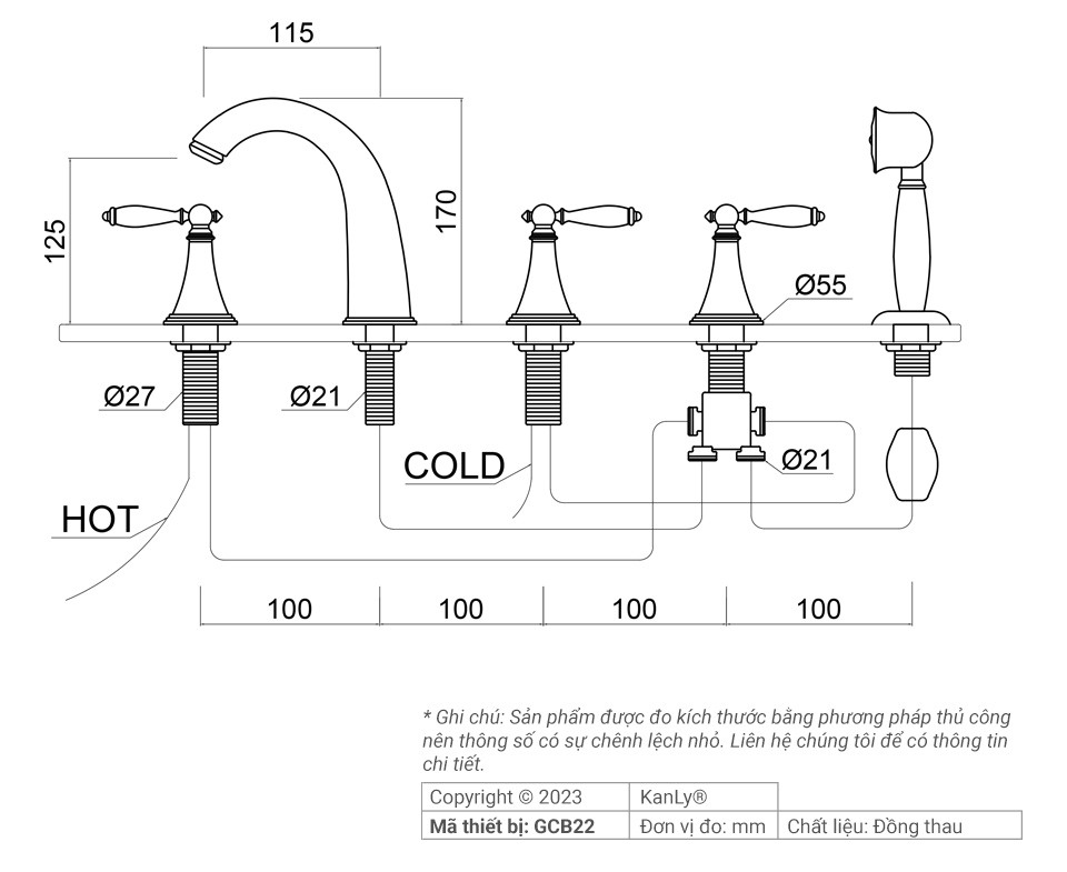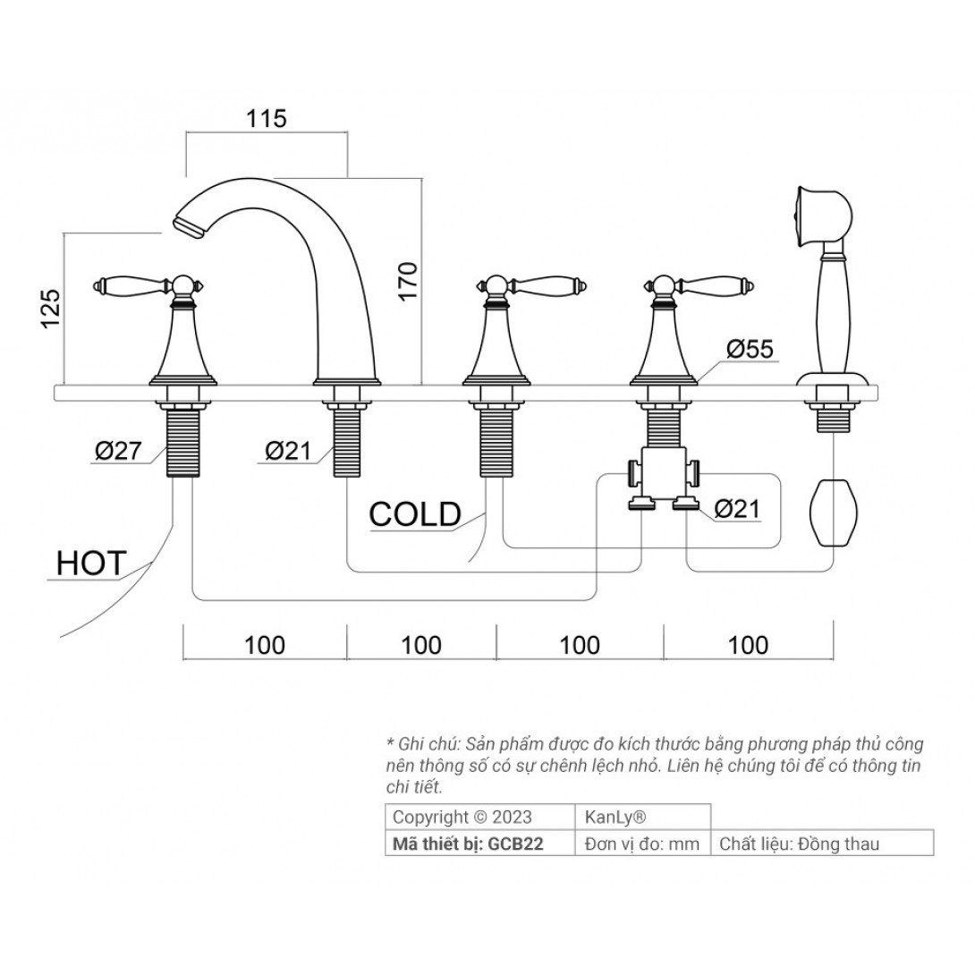 Thông tin vòi chậu rửa mặt 5 lỗ Kanly GCB22 đồng thau