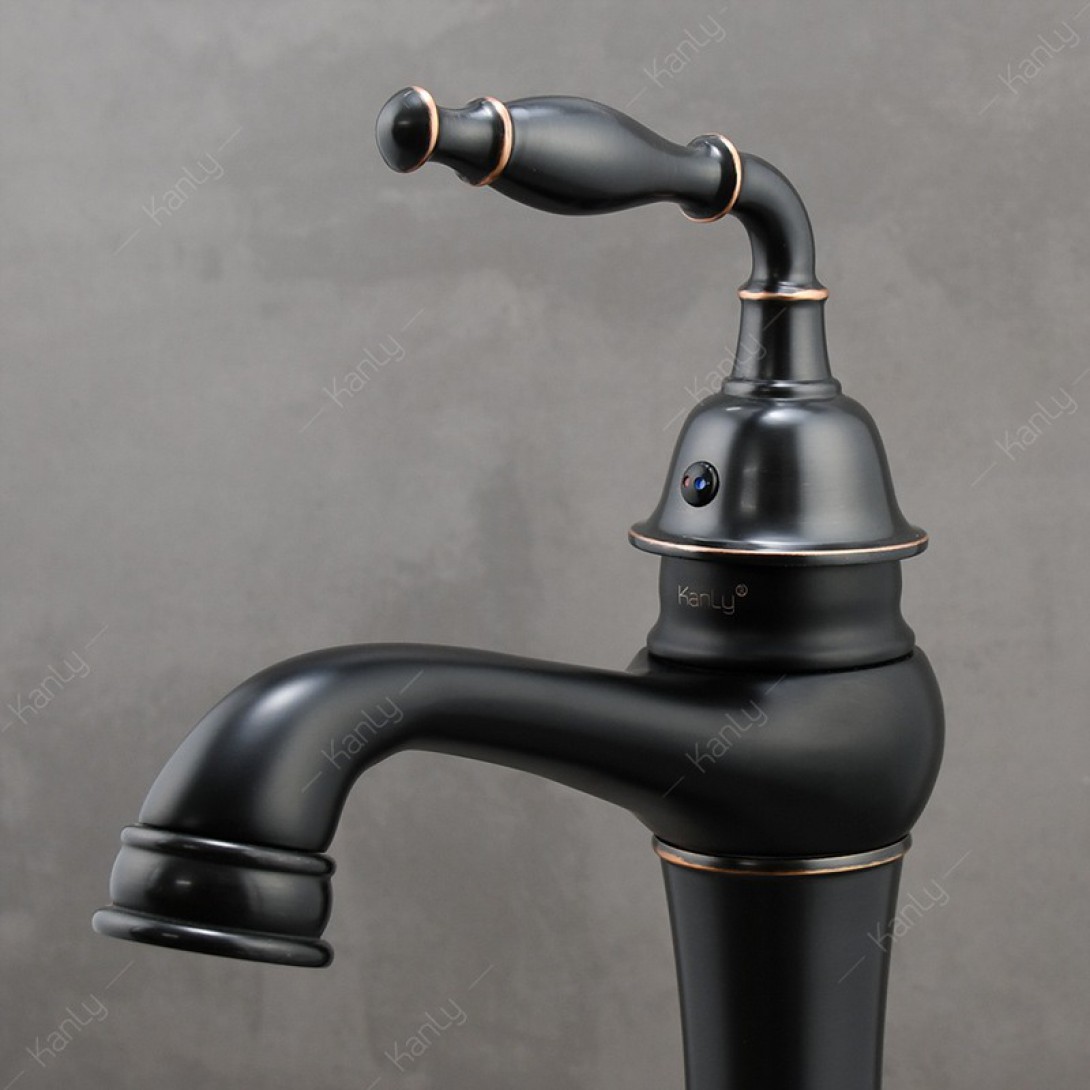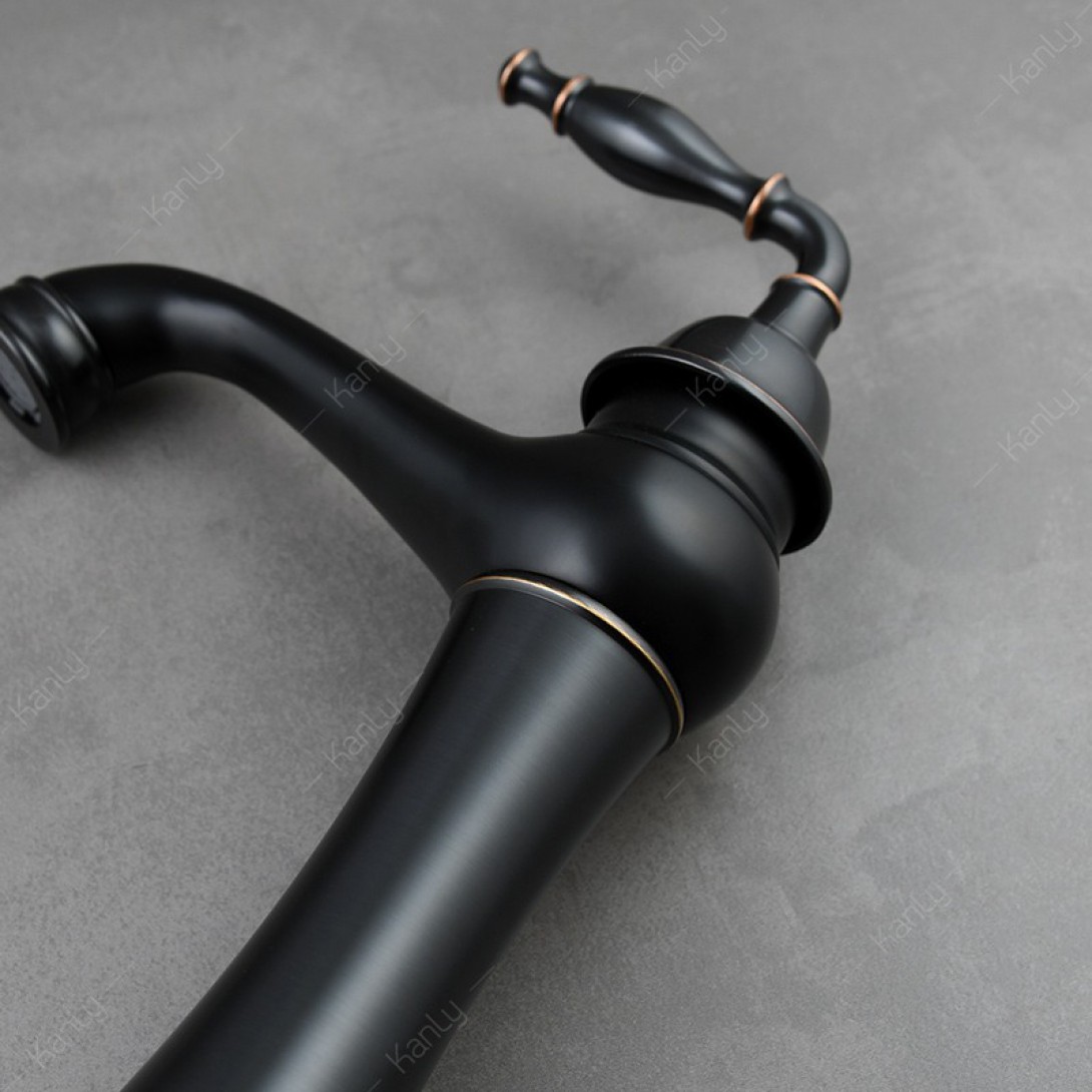 Vòi Lavabo Kanly Cổ Cao GCA14B Bằng Đồng Cổ Điển Màu Đen - Tuấn Đức