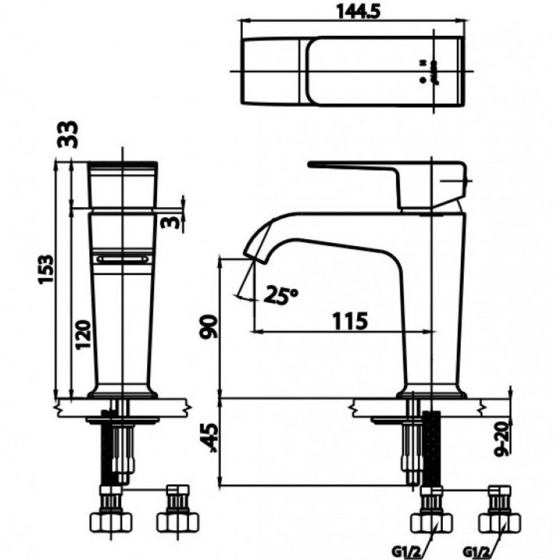 Bản vẽ kích thước vòi chậu rửa mặt Cotto CT2190 A