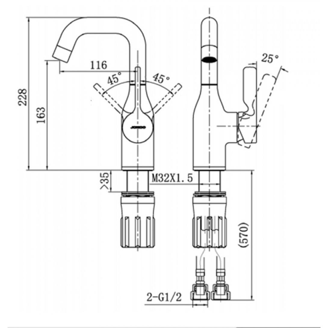 Bản vẽ kích thước vòi chậu JOMOO 32261123DBCZ