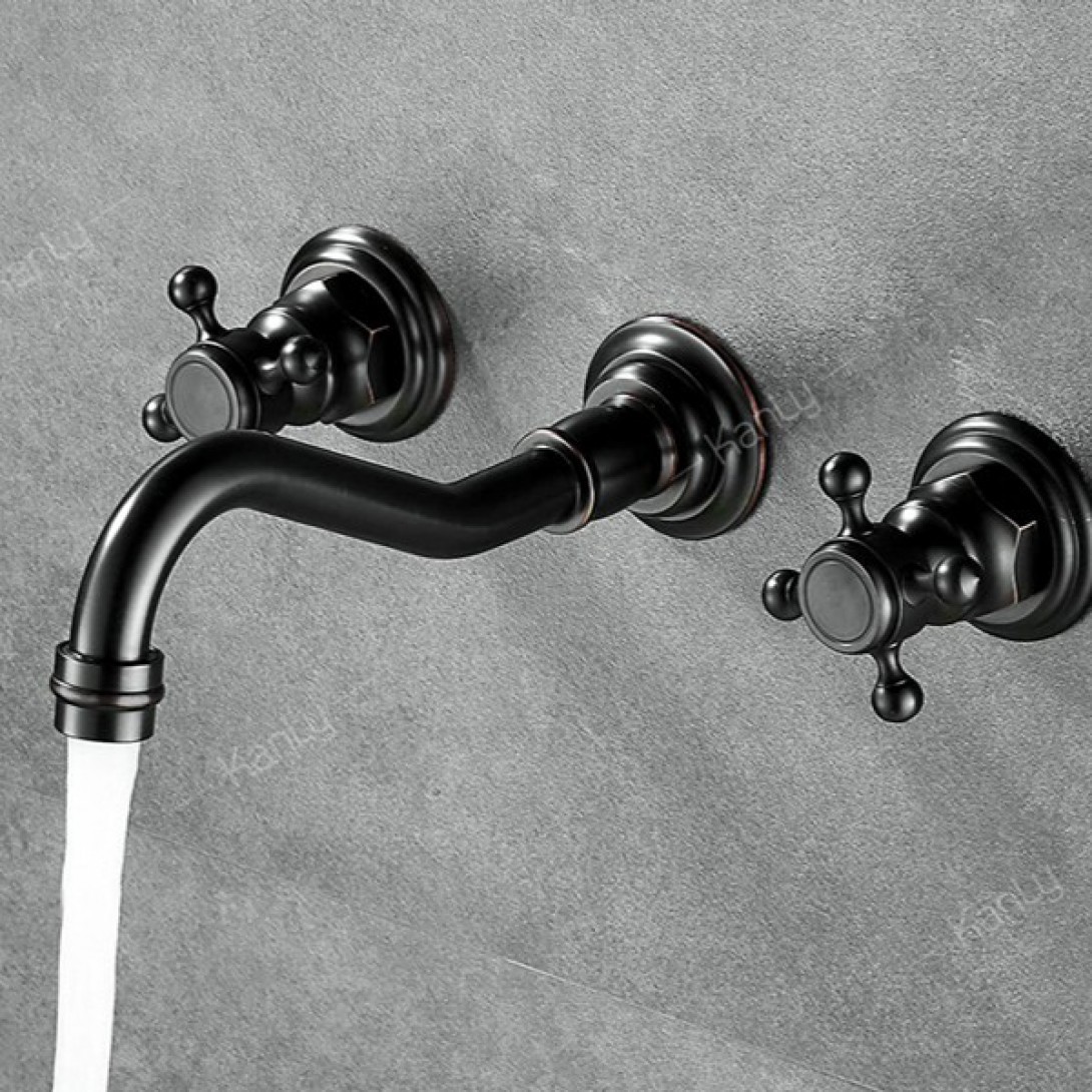 Vòi Lavabo Kanly GCT08B Nóng Lạnh Gắn Tường Màu Đen