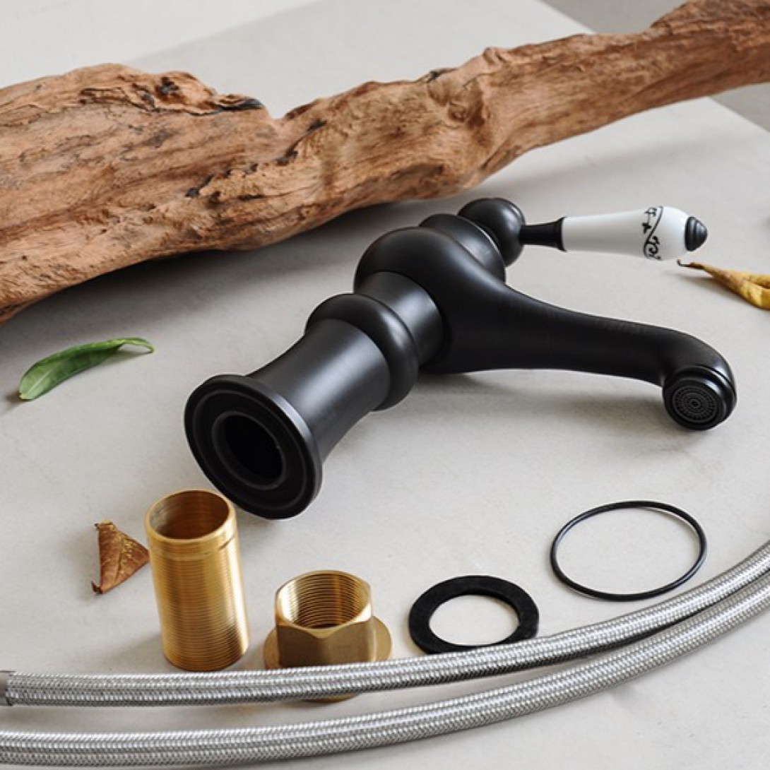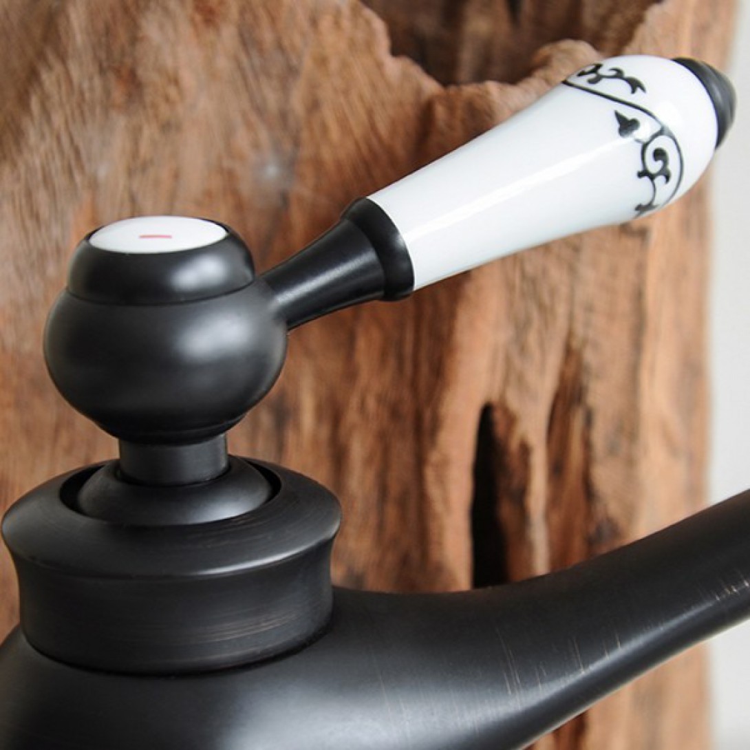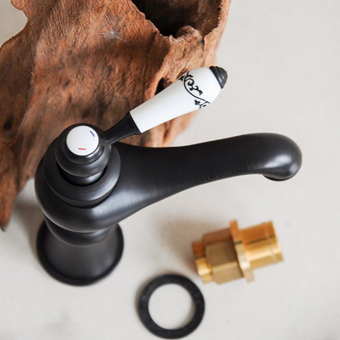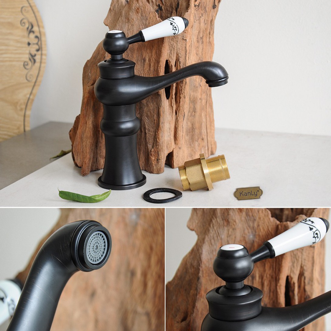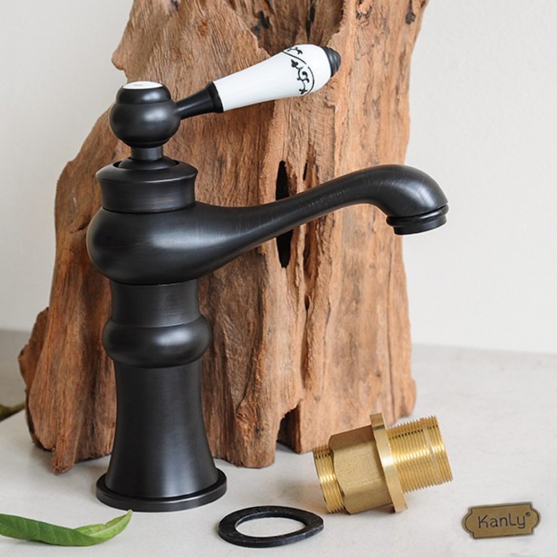 Vòi Lavabo Kanly GCV03B Nóng Lạnh Bằng Đồng Cổ Điển Màu Đen