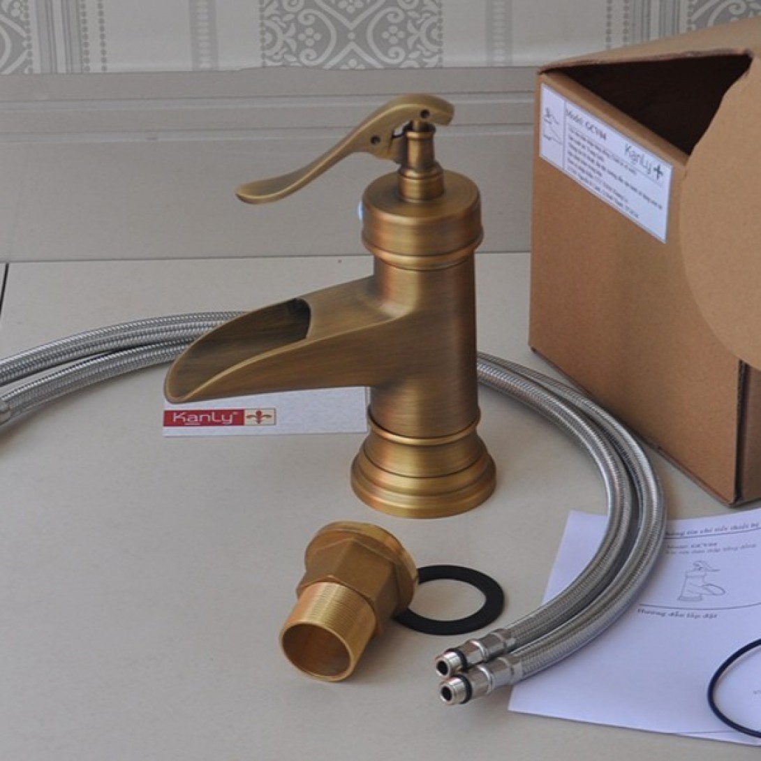 Vòi Lavabo Kanly GCV04 Nóng Lạnh Bằng Đồng Cổ Điển - Tuấn Đức