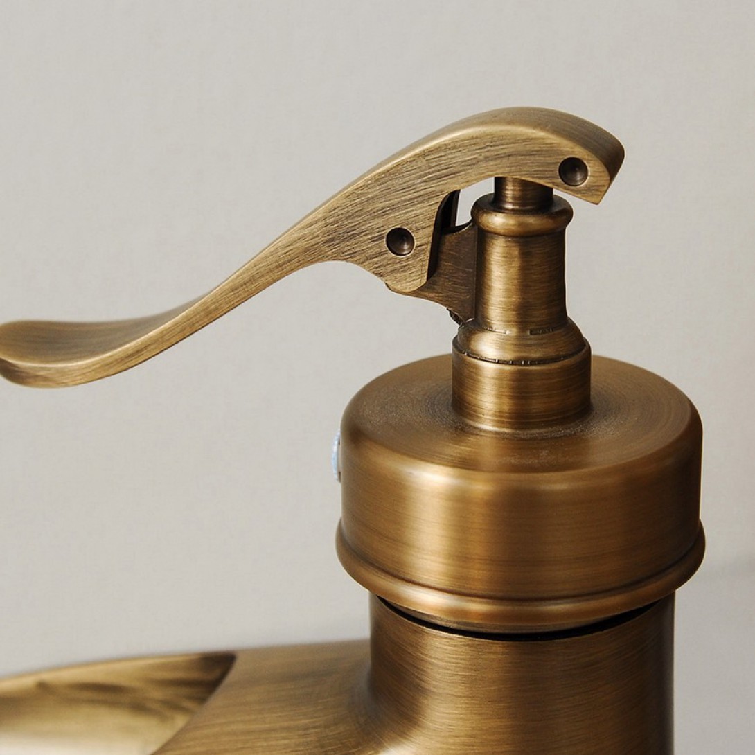 - Vòi chậu rửa mặt Kanly bằng đồng thau, nóng lạnh, kiểu cổ điển GCV04 loại vòi bằng đồng thau, nóng lạnh, kiểu dáng cần bơm nước bằng tay cổ điển, dùng cho lavabo, chậu rửa, tay gạt mở nước gật gù, thân thấp, gắn trên vành lavabo hoặc trên mặt bàn đối với lavabo âm bàn.
