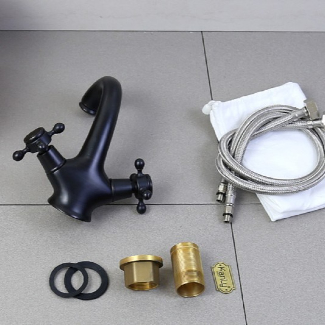 Vòi Lavabo Kanly GCV05B Nóng Lạnh Bằng Đồng Màu Đen