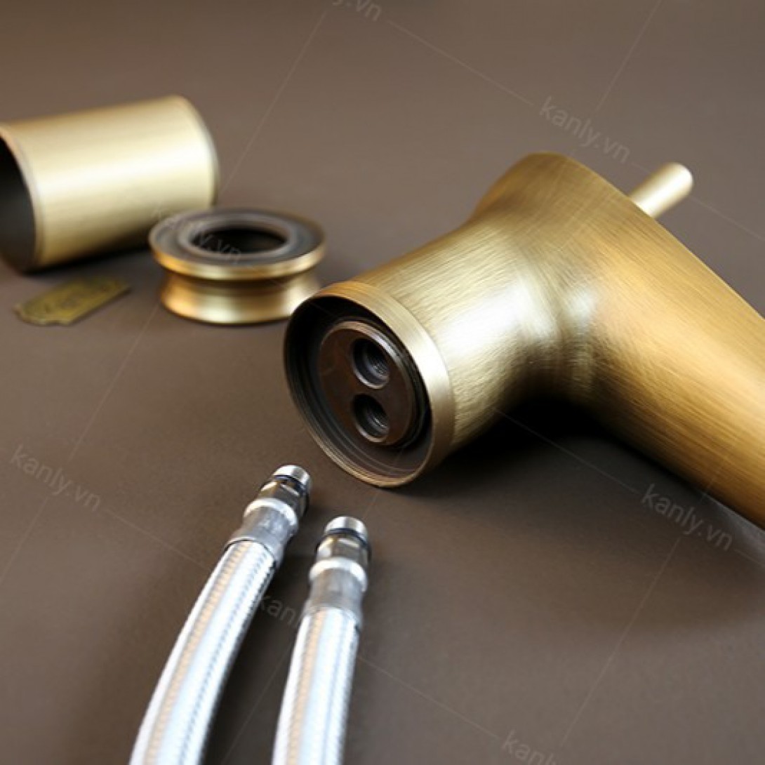 Vòi lavabo 3 lỗ Kanly GCB02 Nóng Lạnh Bằng Đồng Cổ Điển