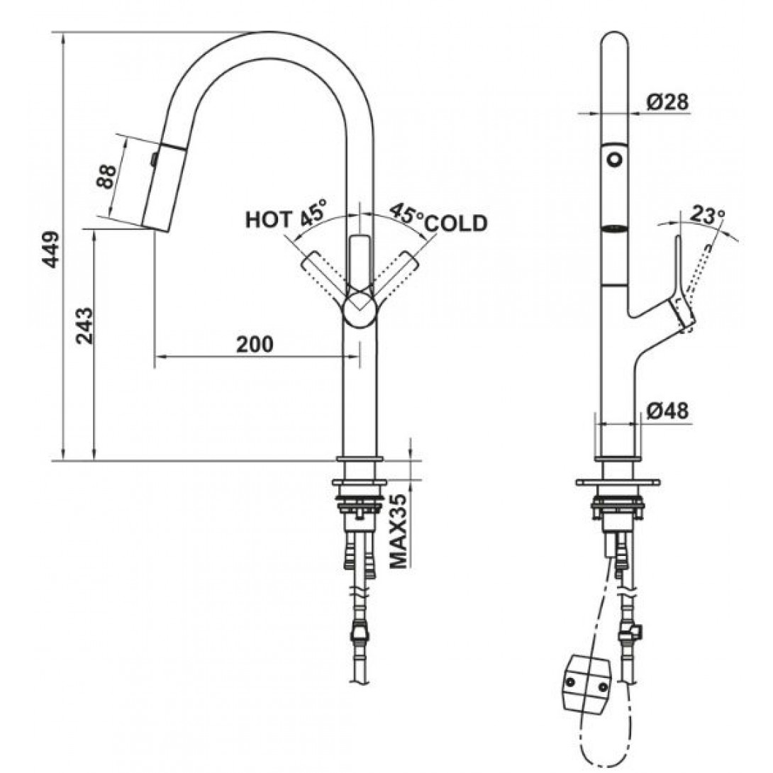 Vòi Bếp Hafele Hydros HT20-CH1P259 570.82.210 Nóng Lạnh Rút Dây