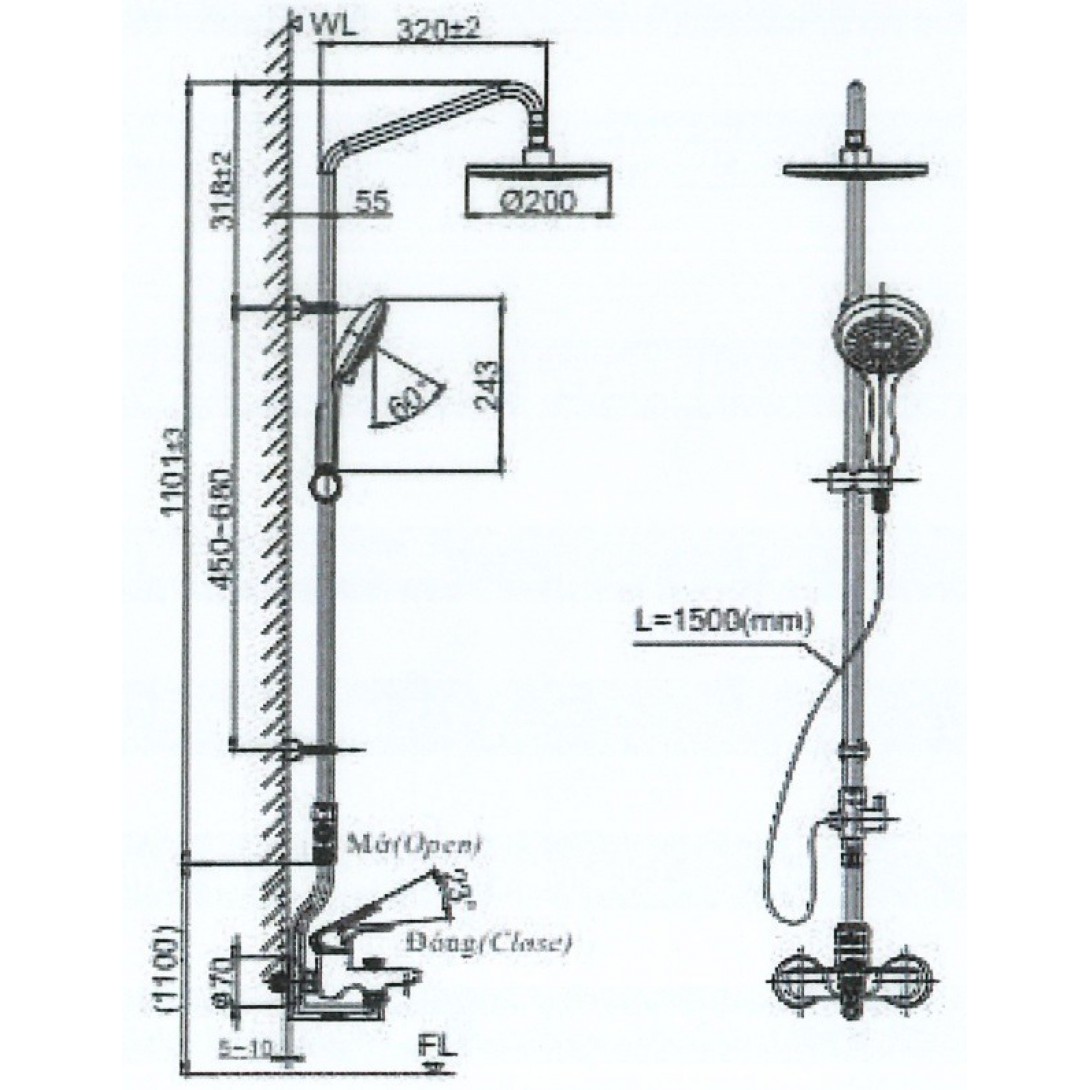 Thông tin vòi sen cây tắm INAX BFV-1115S nóng lạnh Sen cây tắm..