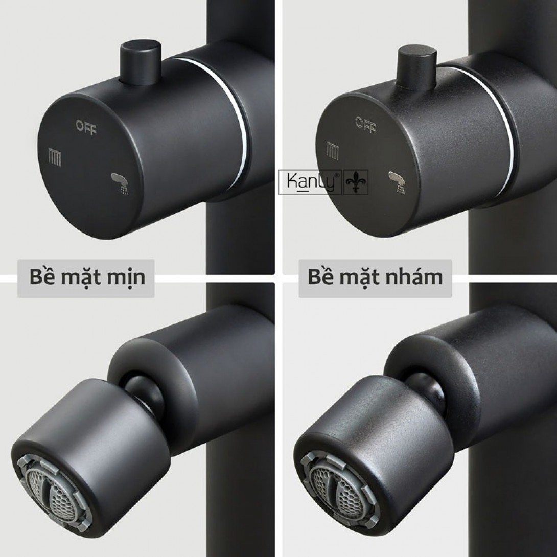 Với mã sen tắm ngoài trời KLS9015 tại KanLy, chúng tôi có 2 loại là màu đen mờ và màu đen nhám, dưới đây là so sánh chi tiết về bề mặt của 2 mã sen tắm:
