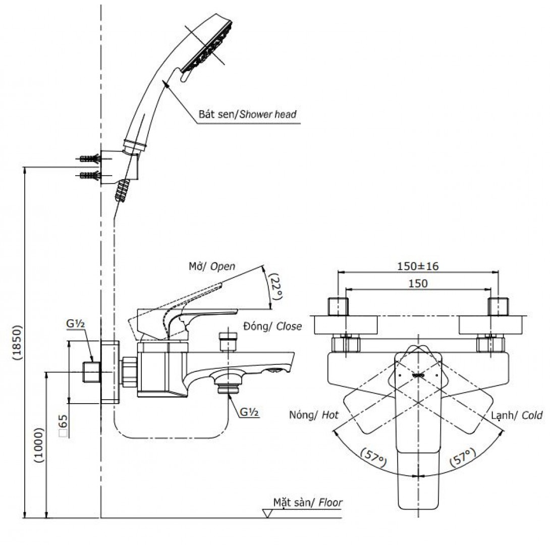 - Áp lực nước: 0.05MPa ~ 0.75MPa