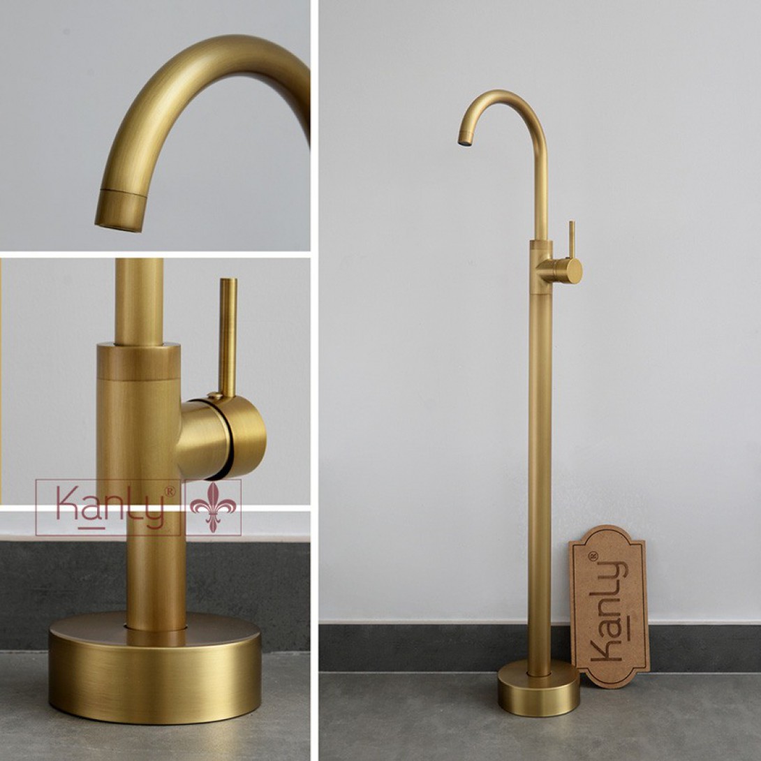 Vòi Sen Xả Bồn Tắm Kanly GCAH6 Nóng Lạnh Đặt Sàn Đồng Thau Cổ Điển - Tuấn Đức