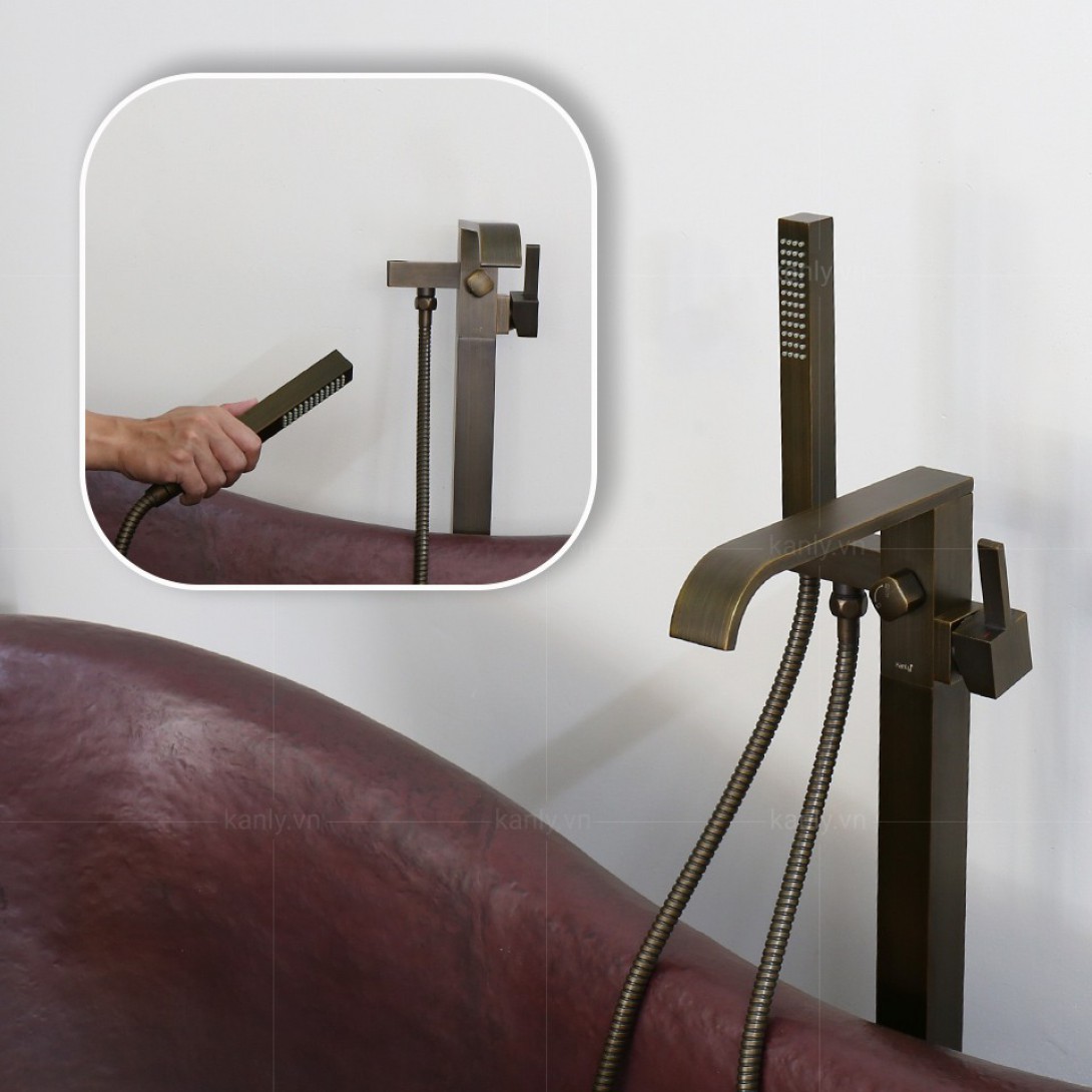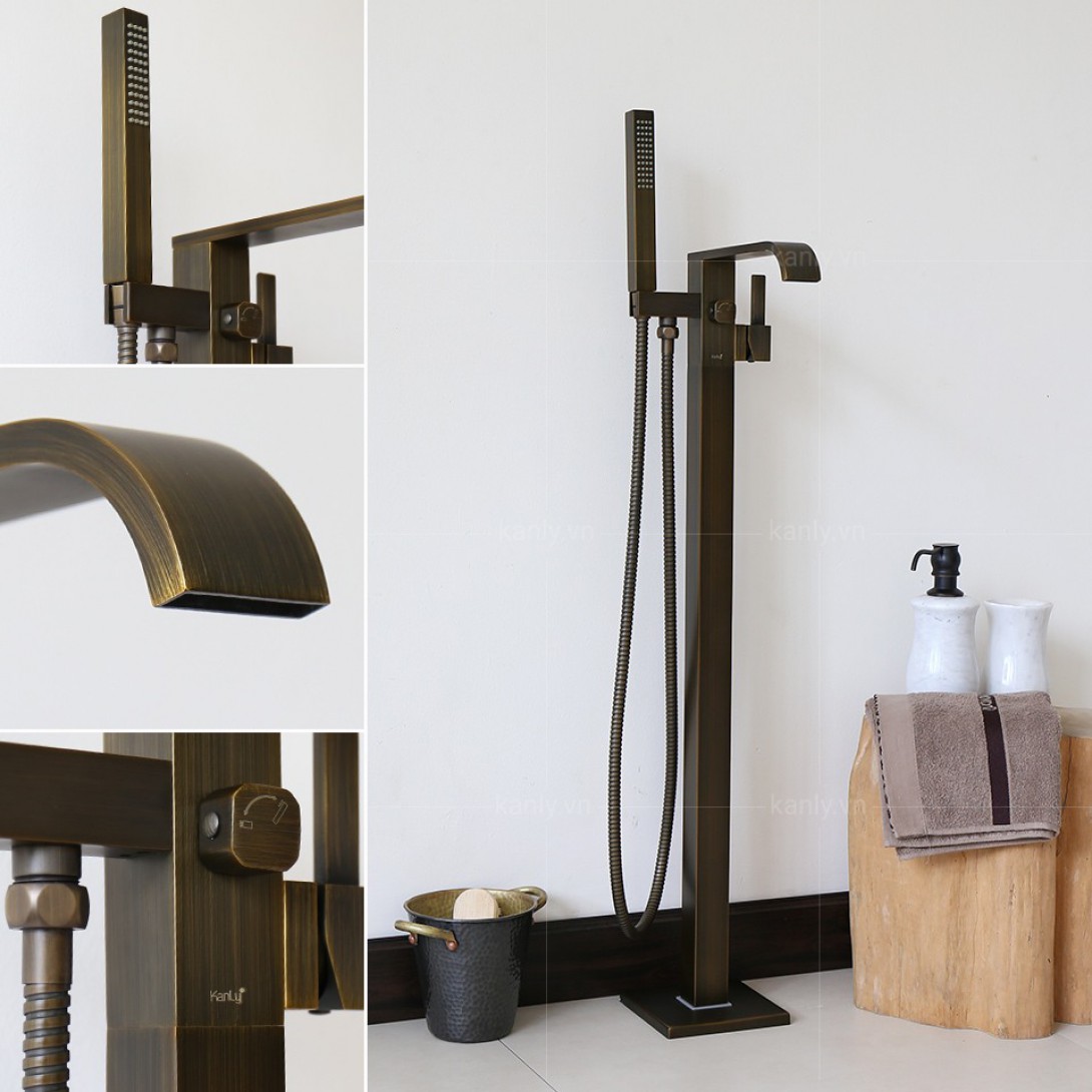 Vòi Sen Xả Bồn Tắm Kanly GCAH7 Nóng Lạnh Thân Vuông Đặt Sàn Đồng Thau Cổ Điển