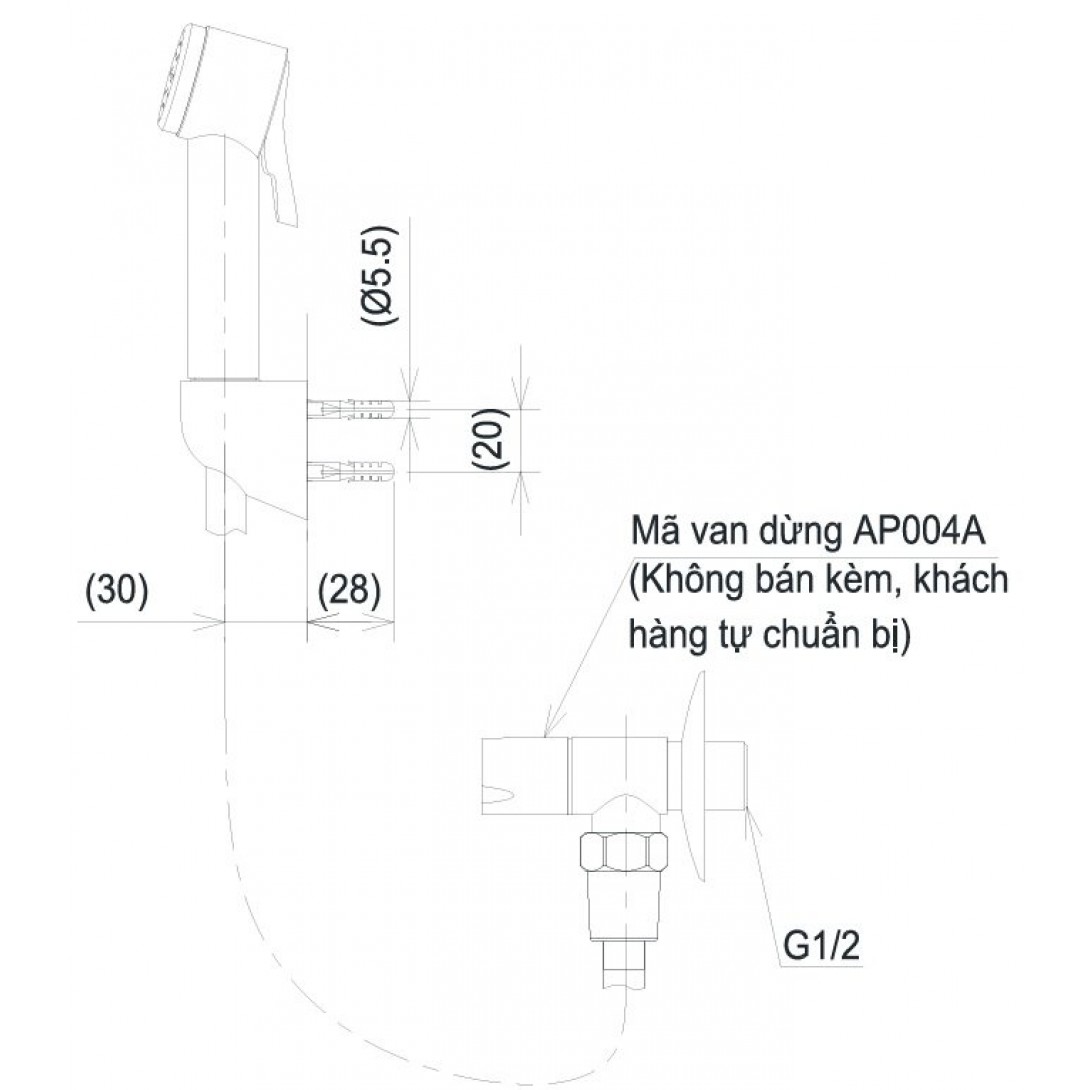 Bản vẽ kỹ thuật dây vòi xịt TOTO TVCF 202